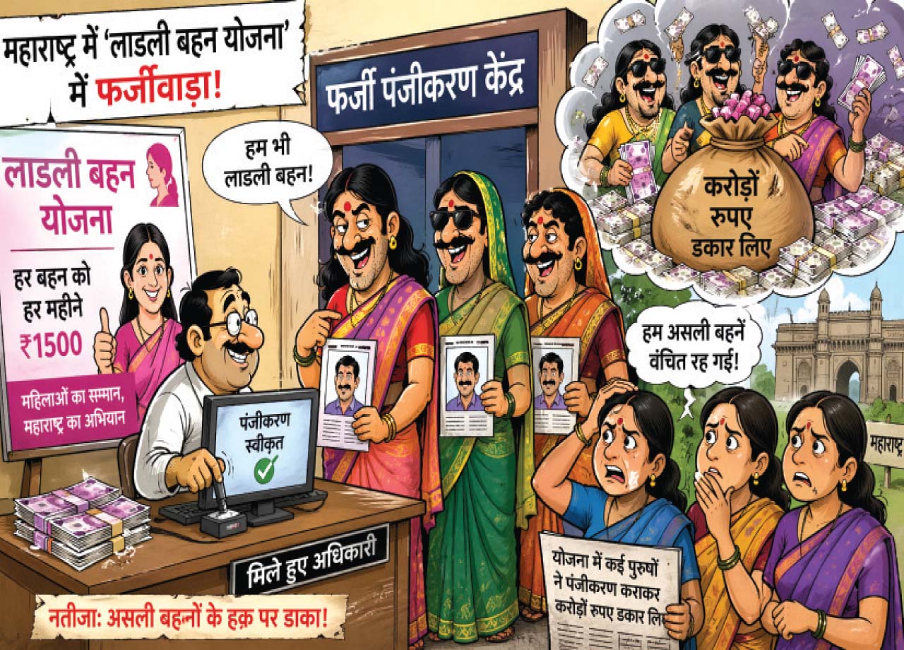 लाडली बहन योजना में एक बड़ा फर्जीवाड़ा सामने आया है। सूत्रों के अनुसार, योजना के क्रियान्वयन में गंभीर खामियां सामने आई हैं। कई पुरुषों ने फर्जी लाभार्थी बनकर करोड़ों रुपए डकार लिए हैं। सवाल उठ रहा है कि आखिर पुरुषों के नाम पर आवेदन वैâसे मंजूर हुए और किस स्तर पर जांच प्रक्रिया फेल हुई? यह केवल तकनीकी लापरवाही है या इसके पीछे किसी प्रकार की मिलीभगत है, इस पर भी संशय गहराता जा रहा है।