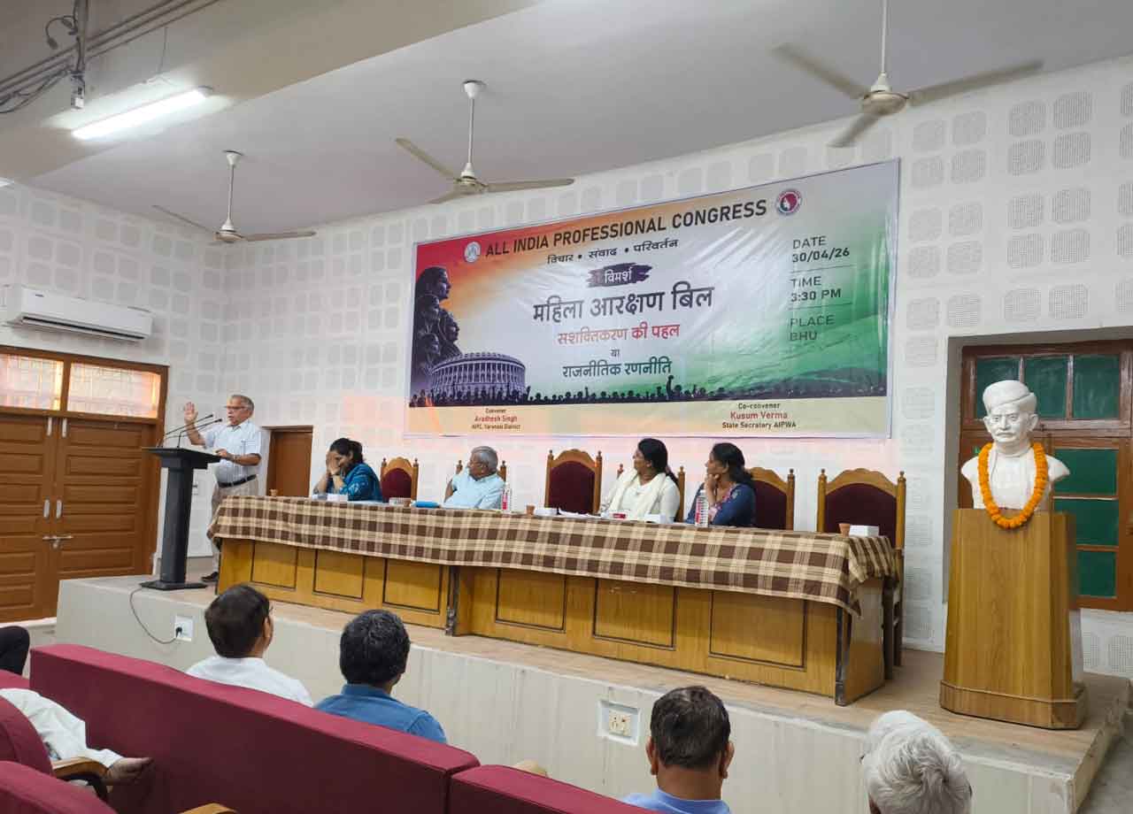 काशी हिंदू विश्वविद्यालय में गुरुवार को “महिला आरक्षण बिल- सशक्तिकरण की पहल या राजनीतिक रणनीति विषय पर एक अकादमिक विमर्श का आयोजन हुआ. इसमें मुख्यतिथि के रूप में बोलते हुए लॉ फैकल्टी के प्रोफेसर रहे अखिलेन्द्र पांडेय ने कहा कि नारी शक्ति अभिनंदन अधिनियम को जिस तरह से पेश किया गया उसे देख कर लगता है कि ये
