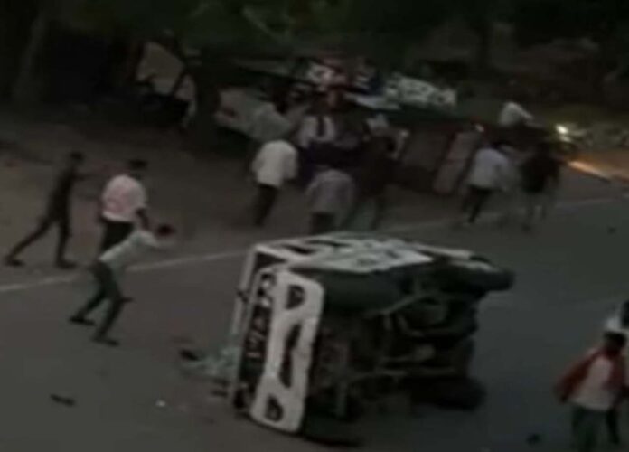 लखीमपुर खीरी जिले में आंबेडकर जयंती पर मंगलवार शाम बवाल हो गया। डॉ. भीमराव आंबेडकर की मूर्ति टूटने के बाद लोगों ने रोड जाम कर दिया। आरोप है कि पुलिस ने भीड़ को हटाने के लिए लाठीचार्ज कर दिया। इससे लोग भड़क उठे। भीड़ ने हंगामा करते हुए पुलिस पर पथराव कर दिया। सीओ और तहसीलदार की गाड़ियों में तोड़-फोड़ की। उन्हें बीच सड़क पलट दी। एक गाड़ी में आग भी लगा दी। सूचना मिलते ही स्थानीय पुलिस अलावा अतिरिक्त फोर्स मौके पर पहुंची है। हालात को काबू में करने का प्रयास जारी है। मामला गोला गोकर्ण थाना क्षेत्र का है।