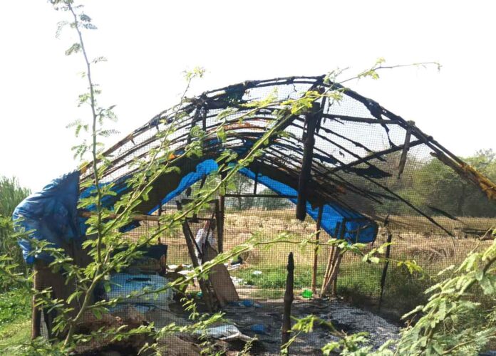 मत्स्य पालन के लिए आवंटित तालाब के किनारे रखवाली हेतु बनाए गए छप्परनुमा गोदाम में मंगलवार सुबह अराजक तत्वों ने आग लगा दी। आग की लपटें उठती देख ग्रामीणों ने तुरंत मत्स्य पालक को सूचना दी और अग्निशमन विभाग को बुलाया।