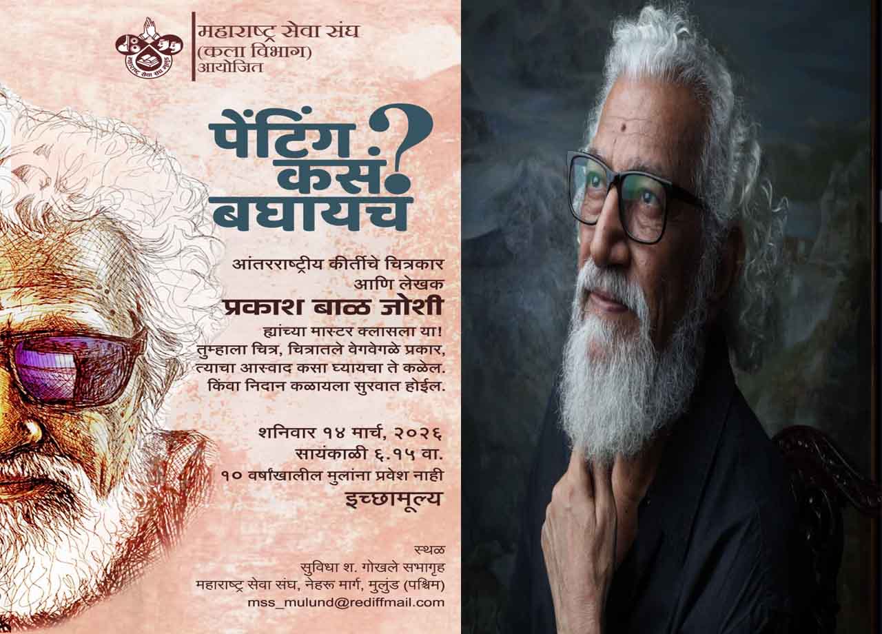 मुलुंड में कला प्रेमियों के लिए एक विशेष अवसर उपलब्ध होने जा रहा है। अंतर्राष्ट्रीय ख्याति प्राप्त चित्रकार, लेखक और वरिष्ठ पत्रकार प्रकाश बाल जोशी का एक विशेष मास्टर क्लास आयोजित किया जा रहा है, जिसमें वे चित्रकला को समझने और उसका आस्वाद लेने की कला पर मार्गदर्शन देंगे। भारतीय चित्रकला के क्षेत्र में प्रकाश बाल जोशी का नाम एक ऐसे कलाकार के रूप में जाना जाता है, जिन्होंने रंगों के माध्यम से केवल चित्र ही नहीं बनाए, बल्कि जीवन के विविध अनुभवों और भावनाओं को अभिव्यक्ति दी है। वे बहुआयामी व्यक्तित्व के धनी हैं और चित्रकार होने के साथ-साथ लेखक, विचारक तथा कला प्रेमियों को चित्रकला की गहराई समझाने वाले मार्गदर्शक के रूप में भी पहचाने जाते हैं।