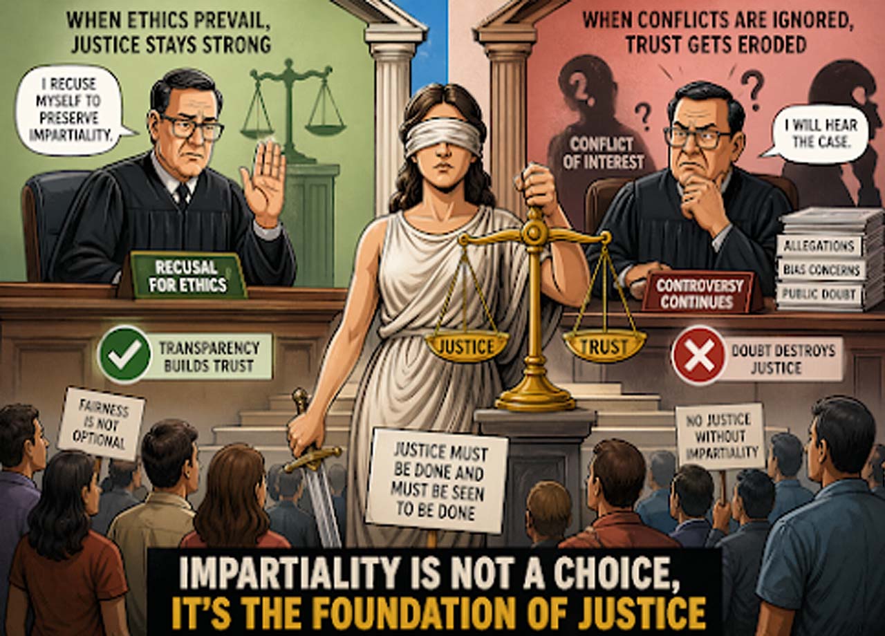 भीमा कोरेगांव जैसे मामलों में कई न्यायाधीशों का खुद को अलग कर लेना यह दिखाता है कि न्यायपालिका के भीतर इस नैतिकता की समझ मौजूद है। लेकिन दूसरी ओर, कुछ मामलों में ऐसा न होना असंगति को उजागर करता है। यही असंगति न्यायपालिका की छवि को कमजोर करती है। यह भी ध्यान देने योग्य है कि न्याय केवल किया जाना ही पर्याप्त नहीं है, बल्कि यह दिखना भी चाहिए कि न्याय किया गया है। यदि आम जनता के मन में यह संदेह पैदा हो जाए कि फैसले प्रभावित हो सकते हैं, तो न्यायिक व्यवस्था का आधार ही कमजोर पड़ जाता है। इसलिए आवश्यकता इस बात की है कि न्यायाधीशों के लिए एक स्पष्ट और सुसंगत आचार संहिता हो, जिसका पालन हर स्थिति में समान रूप से किया जाए। व्यक्तिगत विवेक पर निर्भर निर्णय कई बार विवादों को जन्म देते हैं। न्यायपालिका की गरिमा बनाए रखने के लिए यह जरूरी है कि निष्पक्षता केवल सिद्धांत न रहकर व्यवहार में भी स्पष्ट रूप से दिखाई दे। न्यायपालिका की सबसे बड़ी ताकत जनता का विश्वास है। यदि यह विश्वास कमजोर होता है, तो उसके परिणाम दूरगामी और गंभीर हो सकते हैं। ऐसे में हर छोटे-बड़े निर्णय में पारदर्शिता और नैतिकता को प्राथमिकता देना ही न्यायिक व्यवस्था की स्थिरता और सम्मान को बनाए रख सकता है।