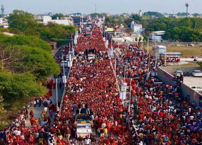 बाबा बागेश्वर धाम के पंडित धीरेंद्र कृष्ण शास्त्री की राष्ट्र हनुमंत कथा के शुभारंभ से पूर्व सोमवार को भव्य मंगल कलश यात्रा दिव्यता और आस्था के साथ निकाली गई। यात्रा के दौरान पूरा मार्ग भगवामय नजर आया और “जय सियाराम” व “हनुमंत लाल की जय” के जयघोष से वातावरण गूंज उठा। कार्यक्रम के आयोजक डॉ. उदय प्रताप सिंह ने हनुमान जी की आरती के साथ शोभा यात्रा का प्रारंभ किया। इस अवसर पर रामायण धारावाहिक के प्रसिद्ध कलाकार सांसद अरुण गोविल (राम), दीपिका चिखलिया (सीता) और सुनील लहरी (लक्ष्मण) का पुष्प वर्षा व आरती कर भव्य स्वागत किया गया। अरुण गोविल ने कहा कि जिन पर हनुमंत लाल की कृपा होती है, उन पर स्वतः ही सियाराम की कृपा हो जाती है। कलश यात्रा में हजारों महिलाओं ने पीत वस्त्र धारण कर सिर पर मंगल कलश उठाया और जगत कल्याण की कामना की। यात्रा मार्ग पर विभिन्न सामाजिक व व्यापारिक संगठनों ने पुष्प वर्षा कर श्रद्धालुओं का स्वागत किया। यात्रा की आकर्षण का केंद्र दिव्य झांकियां, मृदंग, बैंड-बाजे, घुड़सवार दल और हनुमान-गणेश की जीवंत प्रस्तुतियां रहीं। जमुना क्रिश्चियन इंटर कॉलेज से शुरू हुई यात्रा शहर के प्रमुख मार्गों से होती हुई श्री पथरचट्टी रामलीला कमेटी प्रांगण में हनुमान जी की भव्य आरती के साथ संपन्न हुई। प्रयाग उत्थान समिति के पदाधिकारियों ने बताया कि 21 अप्रैल को अरैल माघ मेला क्षेत्र में दोपहर 3 बजे हनुमंत कथा का विधिवत शुभारंभ किया जाएगा। इस अवसर पर जनप्रतिनिधियों, सामाजिक कार्यकर्ताओं और हजारों श्रद्धालुओं की सहभागिता रही।
