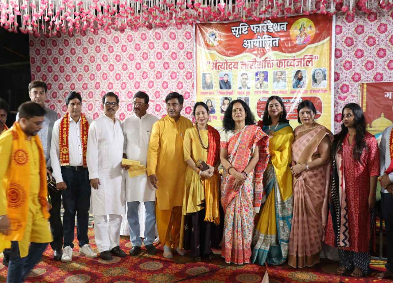 मिरा रोड। सृष्टि फाउंडेशन द्वारा अंतरराष्ट्रीय महिला दिवस, पंडित दीनदयाल उपाध्याय जी की जयंती वर्ष और गायत्री परिवार के पावन शताब्दी वर्ष के त्रिवेणी संगम के उपलक्ष्य में विशेष कवि सम्मेलन ‘अंत्योदय नारी शक्ति काव्यांजलि’ का भव्य आयोजन किया गया। इस गरिमामयी संध्या में कविताओं के माध्यम से महिला सशक्तिकरण और पंडित दीनदयाल जी के ‘अंत्योदय’ (समाज के अंतिम व्यक्ति का उत्थान) के विचार को एक सूत्र में पिरोया गया।