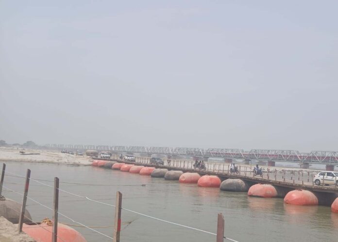 सोलह अप्रैल को दोपहर बारह बजे से पुराना संजय सेतु बंद किया गया और पीपा पुल चालू हुआ। उस समय तक कुछ बड़े वाहन दोनों तरफ आ गए थे, जिनको वापस लौटना पड़ा। छोटाहाथी,पिकअप, ट्रैक्टर में लगे थ्रेसर वाहन, भूसा ट्राली सहित हल्का-फुल्का भी सामान लादे वाहन नहीं निकलने दिए जा रहे, जिससे लोग परेशान भी दिखे। नदी की रेती में टीन बिछाई गई है, जिस पर गुजरते समय धूल बहुत उड़ती है। ई रिक्शा, ऑटो, मोटरसाइकिल वाले धूल गर्दा खाते निकलते हैं। पानी का छिड़काव नहीं हो रहा। एप्रोच मार्ग पर भी धूल उड़ती रहती। इसके अलावा बिजली व्यवस्था नहीं थी, जिससे रात में दिक्कतें हुई। शुक्रवार दिन में बिजली के बल्ली शुक्रवार गड़ रही थीं। उस पार लोक निर्माण विभाग बहराइच के के ई राजेश कुमार लगे हैं, जिन्होंने बताया कि गुरुवार बारह बजे से शुक्रवार को बारह बजे दिन तक करीब सात हजार छोटे वाहन निकले। बड़े वाहन डाइवर्जन मार्ग से निकाले जा रहे। दो माह पुराना संजय सेतु बंद रहेगा। अब तक चौतीस बेयरिंग बदली गई है। बासठ जॉइंटर उखाड़ने हैं, जिनमें दस की खुदाई हो चुकी है। कार्य तेजी से कराया जा रहा है। कार्यदाई संस्था के जे ई अनस मौके पर जॉइंट्स उखड़वा रहे थे।
