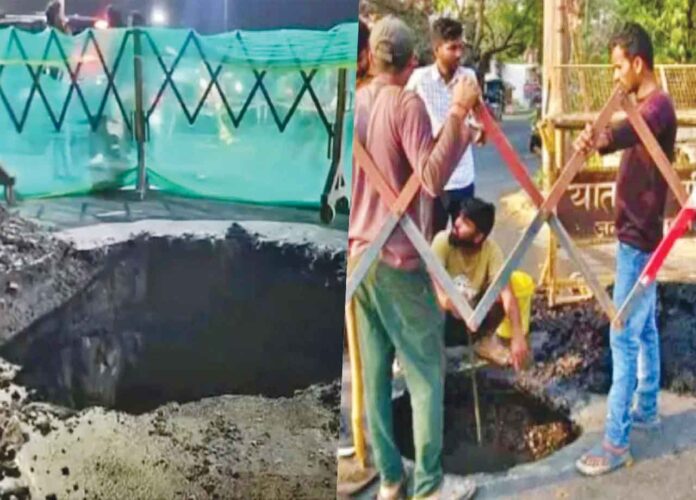 यूपी की राजधानी लखनऊ में हाल ही में लोकार्पित ग्रीन कॉरिडोर परियोजना की सड़क तीसरे दिन ही धंस जाने से निर्माण कार्य की गुणवत्ता पर सवाल खड़े हो गए हैं। यह घटना खाटू श्यामजी मंदिर के पास हुई, जहां सड़क का एक हिस्सा धंसकर करीब पांच फीट गहरा गड्ढा बन गया। इस बीच कांग्रेस के प्रदेश अध्यक्ष अजय राय ने भी इसको लेकर सवाल उठाया है। उन्होंने योगी सरकार पर निशाना साधते हुए कहा कि, वाह रे डबल इंजन का विकास! अभी २ दिन पहले ही रक्षा मंत्री राजनाथ सिंह ने लखनऊ में जिस `ग्रीन कॉरिडोर’ का भारी तामझाम के साथ उद्घाटन किया था, वो पहली बारिश भी नहीं झेल पाया।